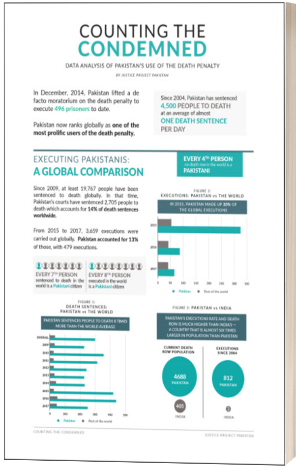Counting the Condemned contains some shocking revelations. There has been almost a 35 percent reduction in Pakistan’s death row population, but we still account for 26 percent of the world’s death row. Every 8th person executed in the world is a Pakistani....